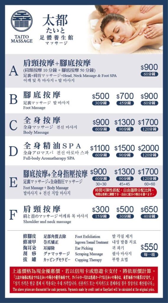 台湾には数多くのマッサージ店がありどこに行こうか迷うと思いますが、どこに行くか決めきれてないならぜひ「太都足體養生館」に行ってみてください。